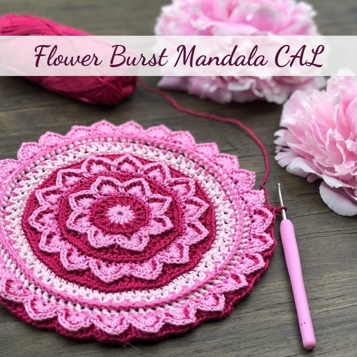 So here in the beginning of July and the sun gives us a fantastic warmth and hopefully some free time for other things, here comes Flower Burst Mandala Cal. A lovely mandala of 42 cm that you can make in a variety of lovely colors.
